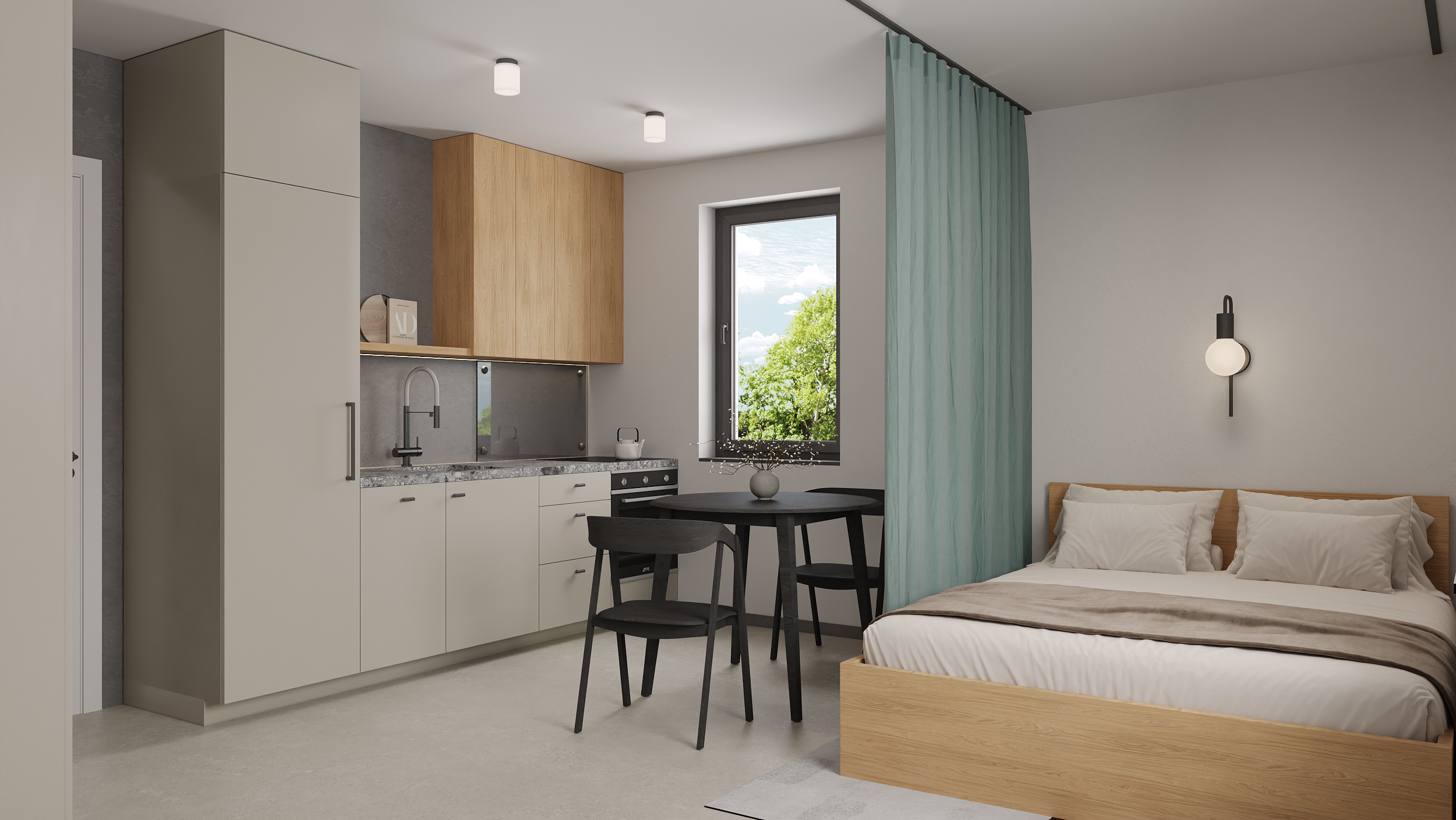 Plně vybavené byty s dispozicemi od 1 kk po 3 kk jsou určeny k dlouhodobému pronájmu a jsou navrženy s ohledem na příjemný komfort každodenního života, dostupnost služeb města a zároveň blízkost přírody.