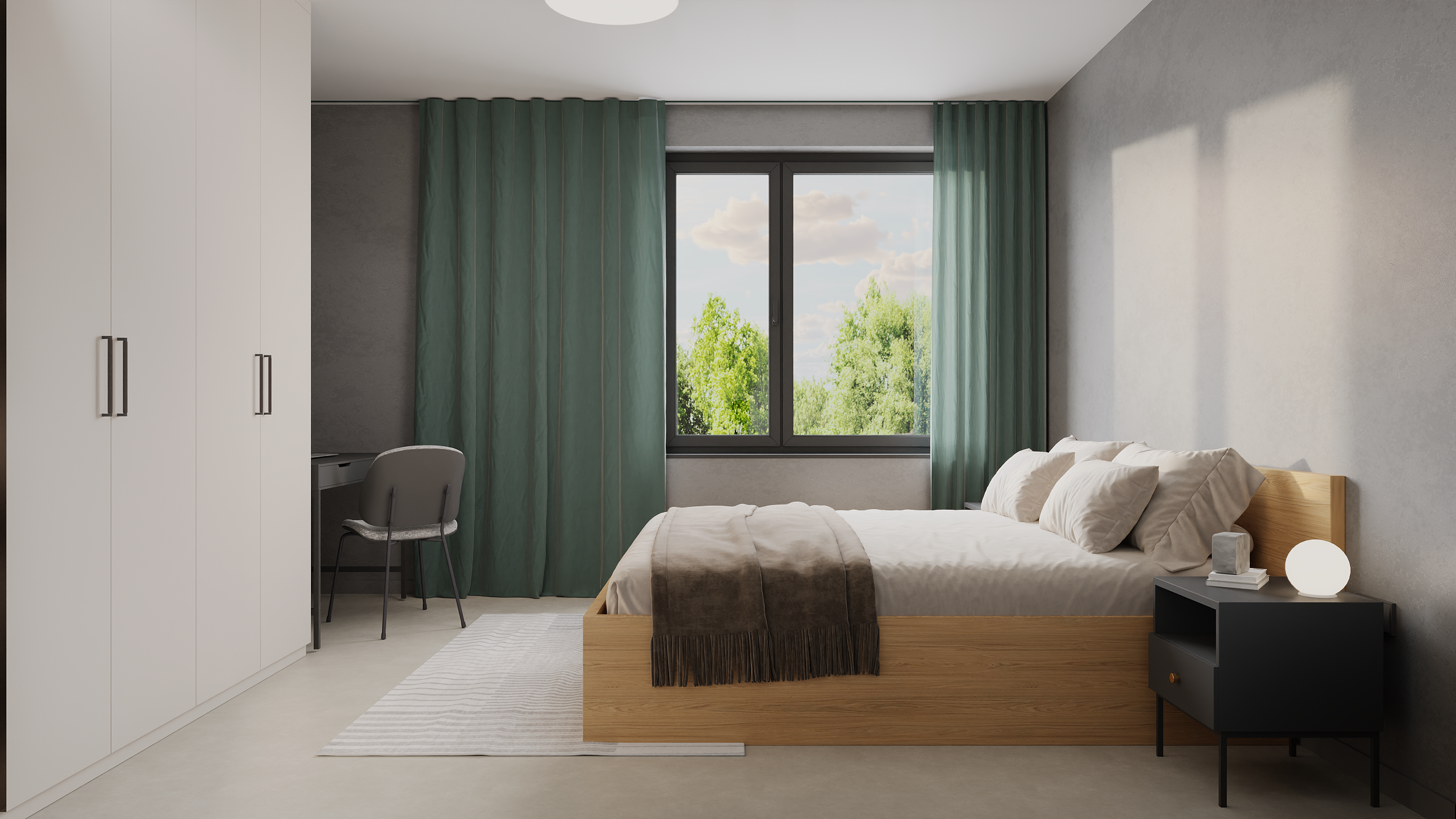 Bydlete pohodlně od prvního dne. Byty jsou kompletně zařízeny od kuchyňské linky se spotřebiči až po vestavěné skříně, nábytek, postel i